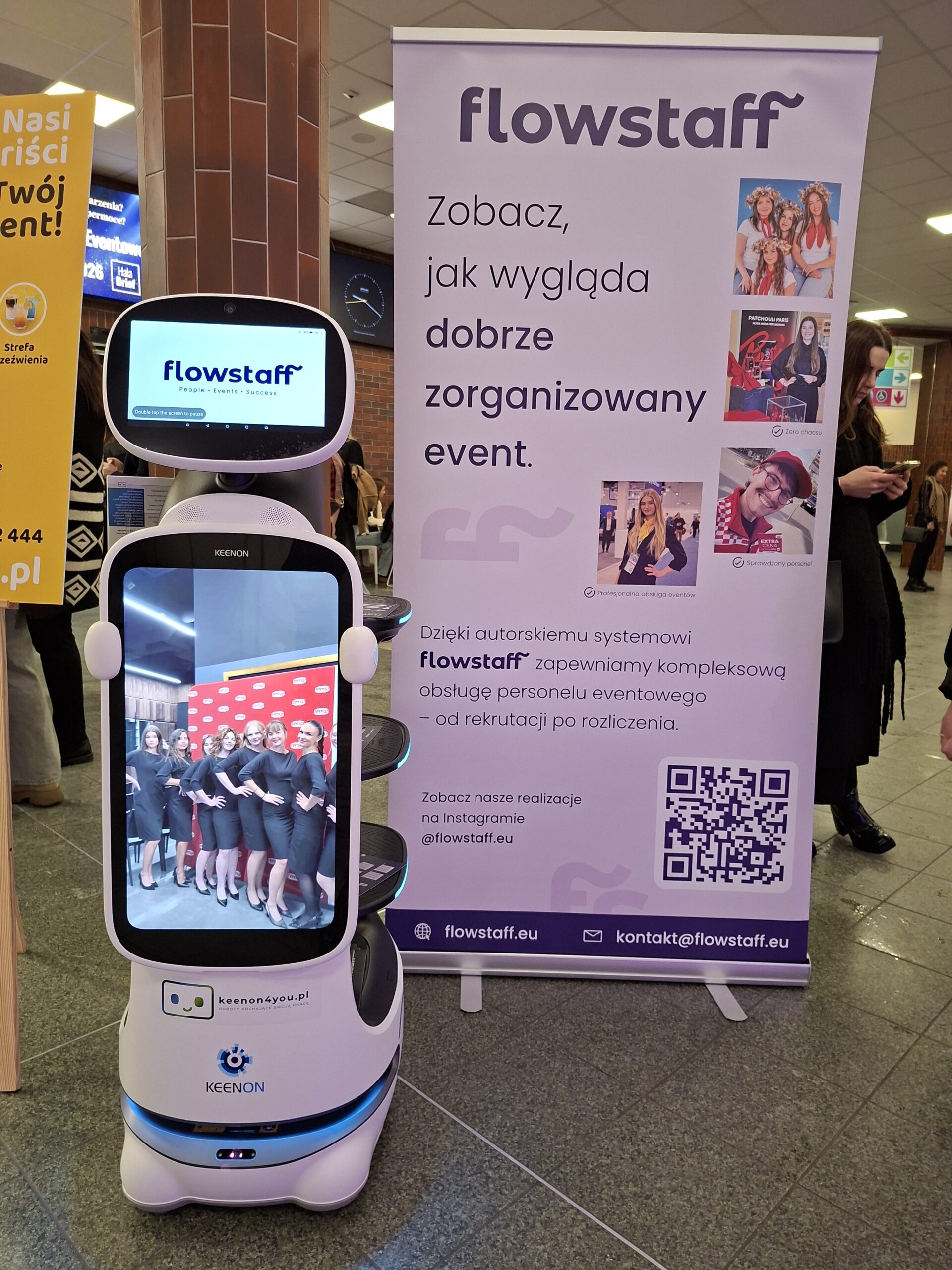 Wraz z Flowstaff.eu pokazaliśmy, jak roboty Keenon4You mogą wspierać organizację eventów, targów i konferencji. Nasze roboty przyciągały uwagę i pokazały, że przyszłość eventów jest już teraz!